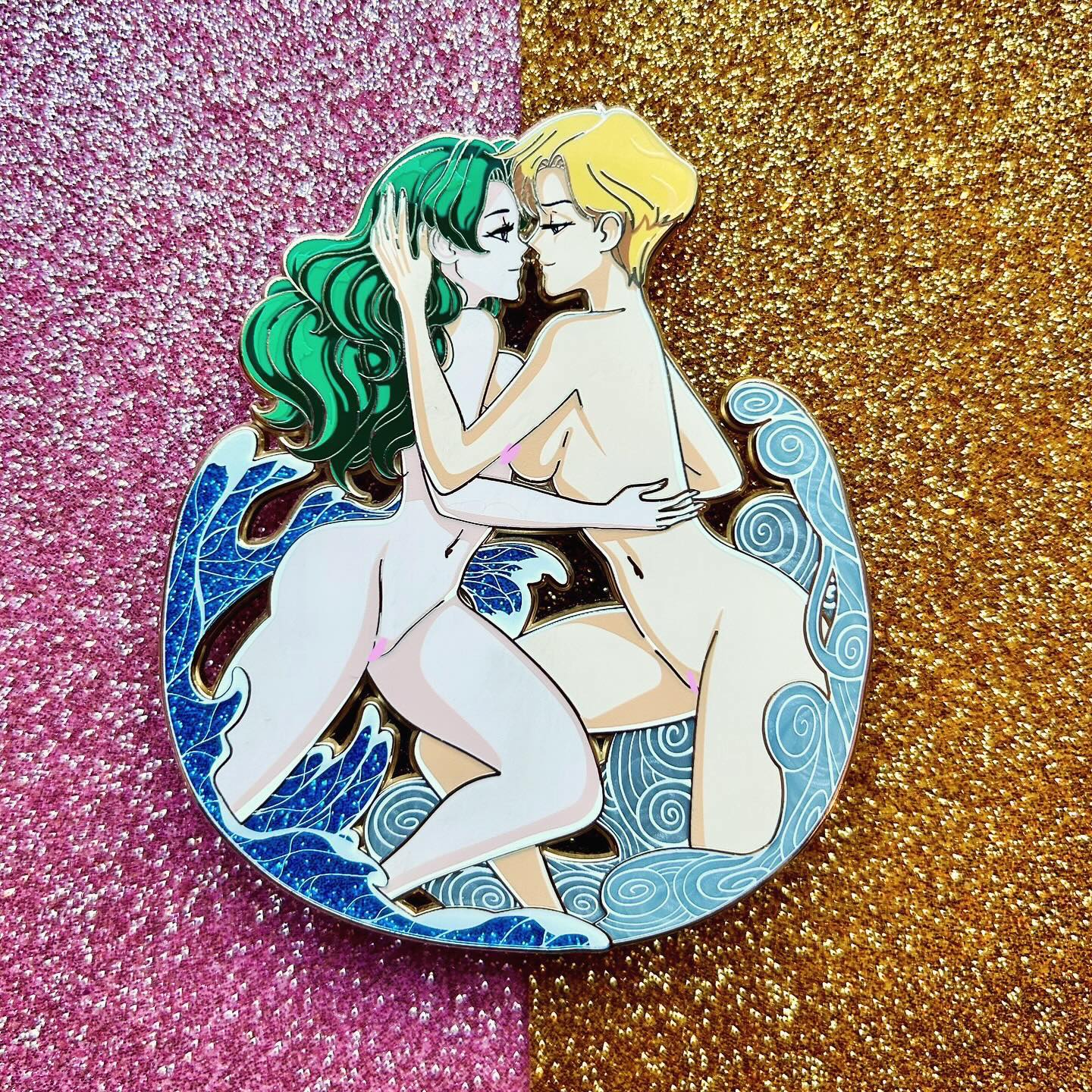 Wind embraces water - this Sailor Embrace pin evokes the magical moment where these two Sailor Girls share their love for one another!